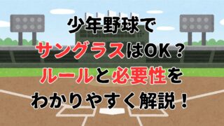 少年野球 少年野球でサングラスはOK?ルールと注意点|おすすめジュニアサングラスも解説 少年野球でサングラスは使っていいの?ルールや注意点、ポジション別の必要性をわかりやすく解説。紫外線から目を守る重要性や、試合・練習での使い方も紹介。おすすめサングラスも掲載しています。 2026.04.14 少年野球野球